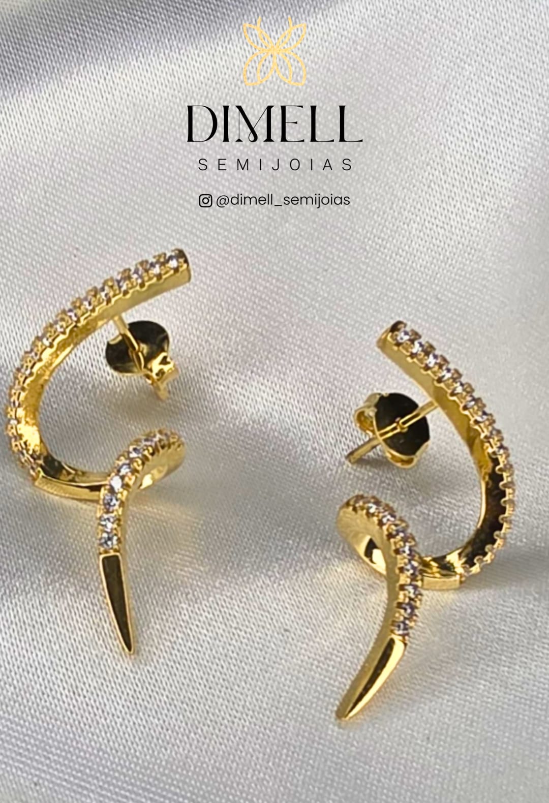Brinco Estela – Curvado com Zircônias Banhado a Ouro 18k
